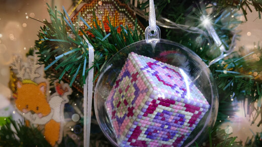 Обзор набора "Шар новогодний" от фирмы "Яркие грани". Алмазная вышивка/ алмазная мозаика. Финиш процесса. Готовое изделие.