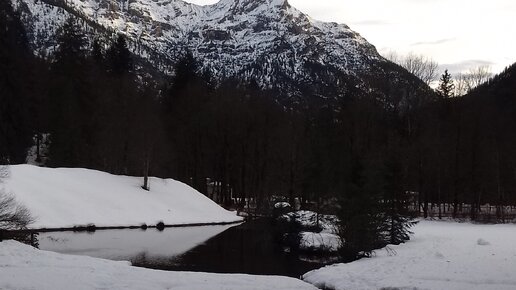 Красивая зимняя деревня в Доломитовых Альпах. Новогоднее видео с воздуха.