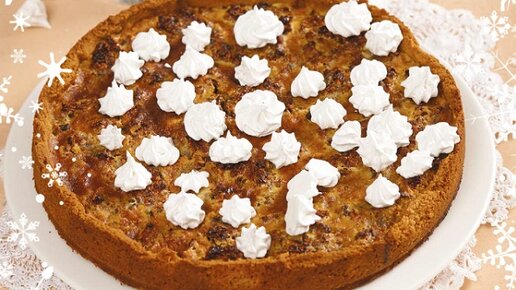 0,5 кг печенья 250 г сливочного масла 1 банка сгущенного молока 3 яичных желтка 200 г чернослива без косточек 200 г кураги 100 г изюма без косточек 100 г очищенных грецких орехов 100 г миндаля 100 г коньяка 1 яичный белок 1/4 ст. сахара 6 порций 1. Печенье измельчить в крошку. Добавить растопленное масло и хорошо вымешать смесь. 2. Получившейся смесью выложить форму для выпечки Проколоть вилкой в нескольких местах. Выпекать в духовке при 180 ˚С в течение 15 мин. 3. В сгущенку добавить желтки и хорошо взбить...