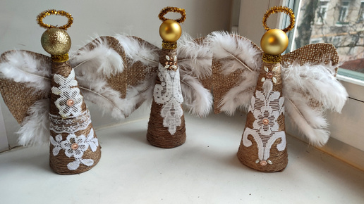Как просто сделать ангела на Новый год и Рождество из джута и мешковины.