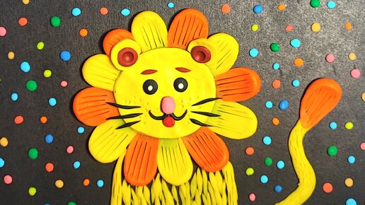 Аппликация из пластилина на цветном картоне " Маленький львёнок в конфетти".