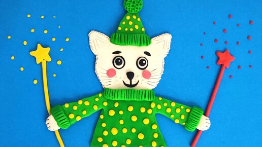Аппликация из пластилина на цветном картоне " Новогодний котик". Пошаговая инструкция с фото для детей.