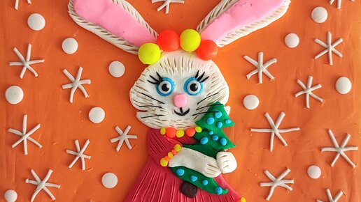 Аппликация из пластилина к Новому году " Символ 2023 года- 🐰 зайка". Пошаговая инструкция с фото для детей.
