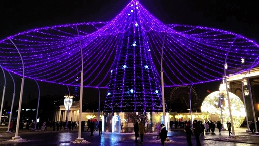 ВДНХ перед новым 2025 годом. Арка главного входа на ВДНХ, новогодние украшения. Теплый декабрь в Москве. Прогулка по Москве в будни зимой