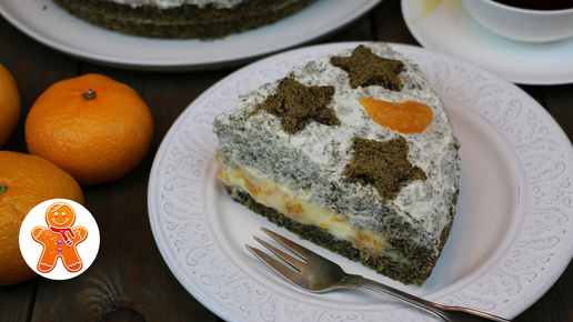 Рождественский маковый торт с мандаринами