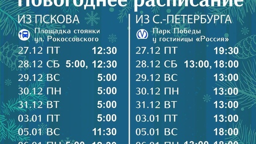 Обновленное расписание движения автобусов по маршруту «Псков – Санкт-Петербург – Псков» на новогодние праздники