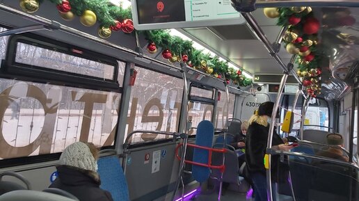 Яркие новогодние автобусы в Москве. Показываю, как выглядят внутри и снаружи