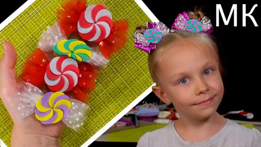 Мое творчество - бантики конфетки из фоамирана для девочки/ сделать своими руками/ мастер-класс канзаши DIY kanzashi