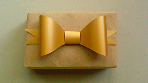 Сделать упаковку нарядной поможет бант из бумаги. Сделать его по-настоящему легко и быстро — у вас уйдет всего 10 минут времени! ШАГ 1 Подготовьте материалы: 1) цветная бумага из которой мы будем делать бант (мы взяли золотую), 2) любая бумага из которой мы вырежем шаблон банта, 3) ножницы, клей и карандаш. ШАГ 2 Отложим в сторону нашу цветную бумагу и вырежем из простой бумаги прямоугольник. Начинаем складывать наш шаблон — сначала по короткой стороне, затем по длинной. ШАГ 3 Возьмем карандаш и нарисуем плавной линией очертания будущего банта...