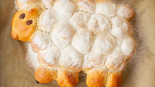 Онлайн-рецепты4 года назадПодписатьсяПасхальный барашек из дрожжевого тестаПасхальный ягненок - символ плодородия. Барашек из теста на пасхальном столе красиво смотрится, и в то же время вкусно. Ингредиенты: 500 г муки, 200 мл теплого молока,