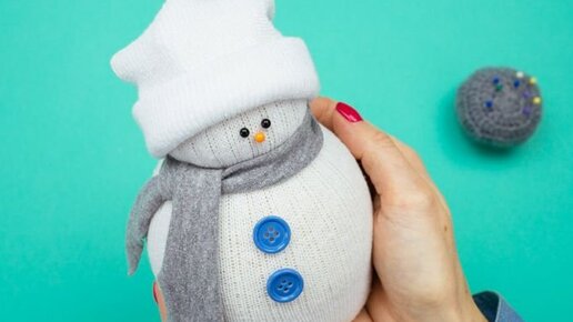 Обращаем ваше внимание на то, что носок должен быть с длинной верхней частью, ведь именно из нее вы будете делать самого снеговика. Из нижней части носка получится шапочка для снеговика.