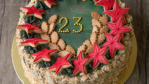 Двойной бисквитный торт — праздничный десерт на 23 февраля