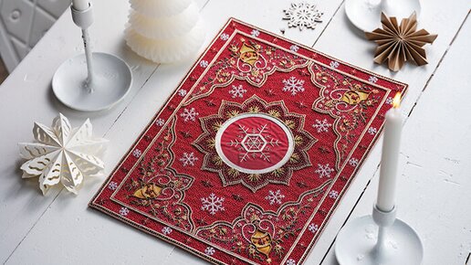 Для выдающейся вышивальщицы бисером Маргарет Ли Рождество - это семья и друзья, а также Рождественская звезда, символизирующая рождение Христа, и праздничные торжества, представленные мишурой, блестками, безделушками и гирляндами. Именно эти три элемента и сувенирная свеча из Финляндии в форме снежного кристалла послужили вдохновением для ее дизайна "Воспоминания", украшающего центральную часть праздничного стола.