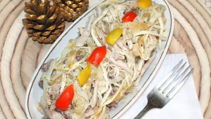 Праздничный стол — это изобилие вкусных блюд, но как приятно, когда после застолья остаётся чувство лёгкости, а не тяжесть. Мы подготовили 5 простых рецептов салатов без майонеза, которые украсят ваш стол, подарят удовольствие и позволят наслаждаться каждым кусочком без лишних угрызений совести. Лёгкое и изысканное блюдо с необычной праздничной подачей. Ингредиенты: Пошаговый рецепт: Мясной салат без майонеза сочетает в себе свежесть овощей и лёгкую кислинку яблока, так что станет отличным украшением на праздничном столе...
