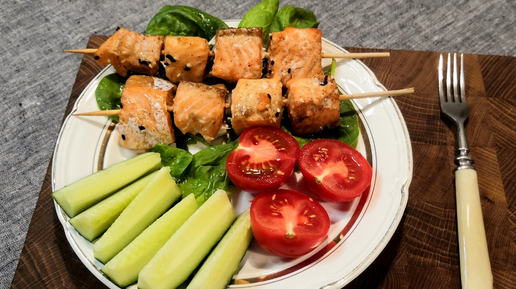 Блюдо для праздничного стола: шашлычки из сёмги