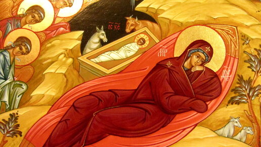 Здравствуй, дорогой читатель. Сегодня перед тобою каноническая икона Рождества, а не живописная картина, или мерцающая лубочная открытка, где мы привыкли видеть в умилении Марию, волхвов приклонивших колена и пастухов пришедших к яслям с овечками в деревянное строение...