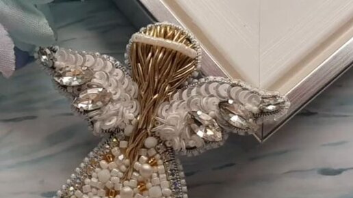 Симпатичное украшение к Рождеству хотите? Тогда сделай брошь из бисера в виде ангелочка, как на фотографии.