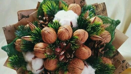 Ореховый букет оригинальный подарок как для женщины, так и для мужчины. В состав входит: грецкие орехи 19 шт.; миндаль 6 шт.; украшен: букет натуральными шишками; натуральным хлопком; искусственной елкой. Такой букет будет оригинальным подарком на Новый год или День Рождения! Ореховый букет будет долго радовать своего обладателя. Идеи новогодних букетов с мандаринами. Если вы заинтересованы в приготовлении апельсиновых букетов, они очень легки в приготовлении и пахнут потрясающе. Вам будут...