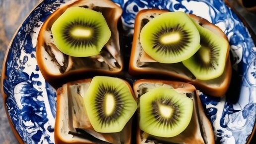 Доброе утречко дорогие друзья. Сегодня хочу поделиться рецептом с бутербродами со шпротами и киви. Мне очень понравилось. Пальчики оближешь 😋😋👍 Ингредиенты: - Хлеб - 6 ломтиков - Киви - 1 шт. - Шпроты - 200 г - Сливочный сыр - 60 г - Майонез - 2 ст. ложки - Укроп - по вкусу - Соль - по вкусу. Приготовление: 1. Киви очистить от кожуры и нарезать тонкими кружочками. 2. Сливочный сыр смешать с майонезом и мелко нарезанным укропом...