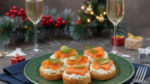Идеальная новогодняя закуска: хрустящие бутерброды с сёмгой