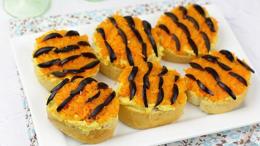 Бутерброды "Тигрята" с форшмаком и морковью для новогоднего стола!