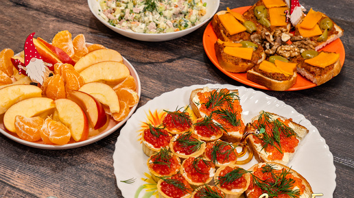 Я ранее выкладывала видео того, что купила и что из этих продуктов приготовила. В целом получился вот такой праздничный стол Хочу поделиться с вами рецептами, иначе всё равно в комментариях будете спрашивать. Соления идеально подходят на любой "зимний" стол На горячее приготовила рубленые котлеты. В нашей семье - это беспроигрышный вариант. Можно готовить с разными пропорциями, разными ингредиентами - всё равно будет идеально. Готовила новый вид бутербродов. Как сейчас модно говорить - брускетта Картошку тоже делала не просто абы какую, а под соусом Из фруктов дома были груши и апельсины...