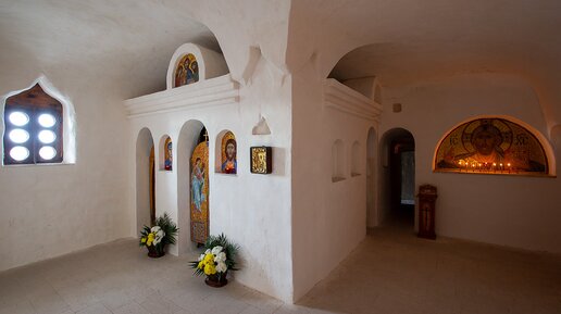Историческое ядро Свято-Успенской Святогорской Лавры — Святая Скала с пещерами древнего монастыря в честь Пресвятой Богородицы на правом берегу Северского Донца. Центральное место в комплексе пещерных сооружений занимает церковь Рождества святого Иоанна Предтечи, расположенная на втором ярусе пещер меловой скалы. Самой характерной её особенностью является поддерживающий своды меловой столб, на котором, по преданию, была явлена чудотворная икона святителя Николая. В некоторых монастырских документах середины 1640-х гг...