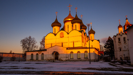 В закатном свете на праздник Крещения. Показываю вечерний Спасо-Евфимиев монастырь в Суздале - один из самых известных монастырей России