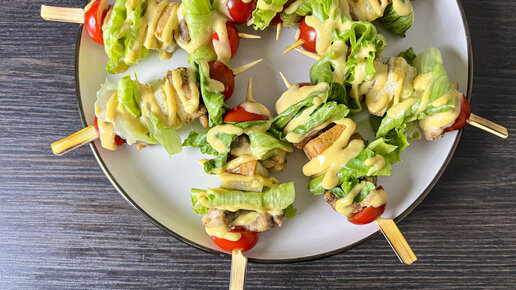 Салат цезарь на шпажках: закуска к новогоднему столу