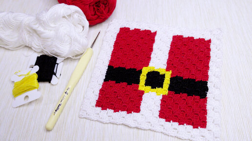 Вязаная подставка под чашку к Новому году. Техника вязания крючком С2С.