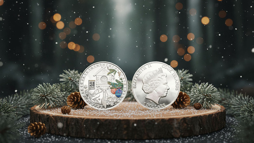 🎄 Серебряная монета «С Новым годом — Часы с кукушкой» — Острова Кука