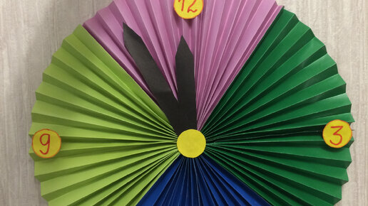 Через 1,5 месяца наступает Новый год. Сейчас самое время начинать готовиться к предстоящему празднику. Для украшения комнаты предлагаю сделать Новогодние часики. Для изготовления этой поделки нам потребуется: 1). Цветная бумага (4 листа формата А4; кусочек бумаги черного цвета для стрелок; бумага для цифр); 2). Клей ПВА (можно так же использовать горячий клей, для приклеивания ниточки и цифр, но не обязательно); 3). Ножницы; 4). Фломастер (для цифр, но можно распечатать цифры). Берем лист цветной бумаги формата А4 и складываем пополам (длинную сторону к длинной)...