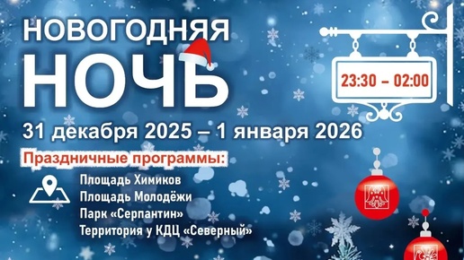 С 23:30 праздник будут отмечать на площадях Химиков и Молодежи, в парке "Серпантин" и у центра "Северный". "Череповчан встретят творческие коллективы, Дед Мороз и Снегурочка, будут хороводы у елки и зажигательные дискотеки. Приходите семьями, с друзьями и хорошим настроением", - пригласил глава города Роман Маслов...