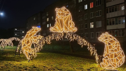 Черняховск перед Новым годом засиял праздничными огнями. Об этом рассказал в своем телеграм-канале глава администрации округа Сергей Булычев. Улицы города украсили ночные светящиеся декорации. Прохожих приветствуют медведи, которые сияют белыми и желтыми лампочками...