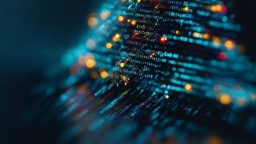Lines of programming code forming a Christmas tree, with points of light representing LEDs, on a bright, well-lit background with a