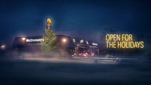 правки. Сняв настоящую ёлку на фоне ресторана под особым углом, они добились оптической иллюзии: золотые арки бренда превратились в звезду на её макушке. Этот простой, но гениальный приём с перспективой стал тёплым напоминанием, что McDonald's по-прежнему открыт и ждёт гостей в праздничные дни...