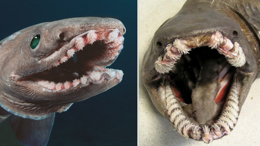 Плащеносец: Акула, пожирающая акул. Зачем ей зубы в стиле бензопилы?