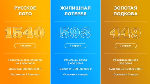 Анонс на 7 апреля: Русское лото, Жилищная лотерея, Золотая подкова