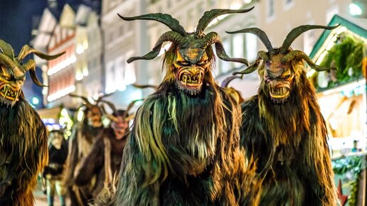 Крампус (нем. Krampus) – рогатое антропоморфное существо, в фольклорной традиции альпийских народов сопровождающее Святого Николая (Санта-Клауса) в ночь на 5 декабря («Krampusnacht», «Krampus Night», «Ночь Крампуса»), непосредственно перед 6 декабря – праздником Святого Николая, когда тот приходит к детям. Согласно этой традиции, Святой Николай награждает послушных детей подарками, а Крампус наказывает непослушных берёзовыми прутьями. На традиционных парадах и таких мероприятиях, как Krampuslauf («бег Крампуса»), молодые люди, наряженные Крампусами, пытаются напугать зрителей своими выходками...