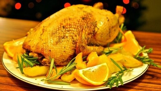 Птица, запеченная в духовке с апельсинами, украсит любой праздничный стол...