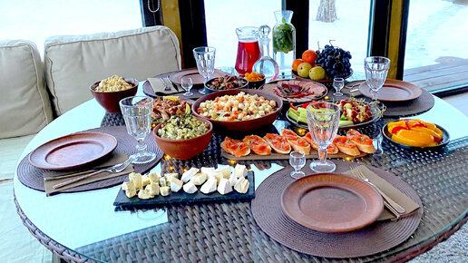 Здравствуйте, дорогие читатели! Как вы уже знаете, у нас много родни и друзей 😉. Дни Рождения не всегда получается справить одной большой компанией, приходится собираться частями. В этот день у нас были друзья. Накрыла стол в беседке, там достаточно тепло и комфортно. Так как нас было всего четыре человека, много не готовила. Еда даже осталась, но не пропала 😉. видео ниже 👇 САЛАТ С МОРЕПРОДУКТАМИ Если любите морепродукты, то рекомендую попробовать этот салат. Готовить его просто, а получается вкусно...