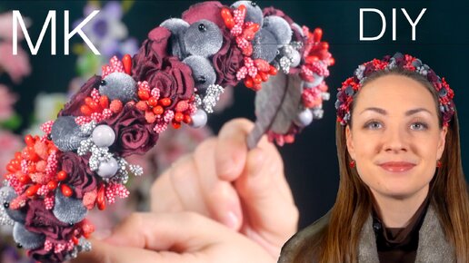 Новогодний ободок, зимний венок - Снежные ягоды и цветы на праздник! Канзаши своими руками!