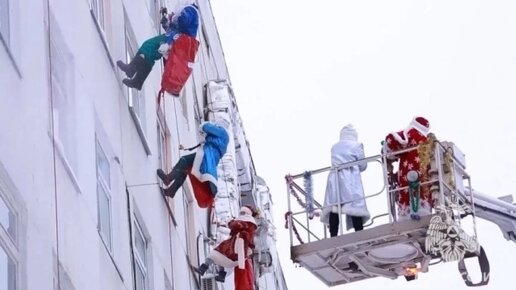 Дед Мороз - альпинист поздравил маленьких пациентов тюменской больницы с Новым годом