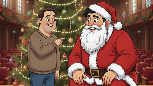 Я изо всех сил старался не разрушать им сказку, но всё вокруг было таким тёплым, смешным и по‑детски искренним, что улыбка сама пробивалась сквозь попытки сдержать тихий, добрый смех. Стою за кулисами актового зала. Снегурочка у ёлочки вместе со всеми ребятами и девчатами зовут Дедушку Мороза всё громче и дружнее, будто заклинание для чуда. А я там, в полутьме, волнительно жду своего момента, нарочно томя их ожиданием. И каждый новый возглас разносится по залу, как светлый колокольчик. И вот — мой выход...