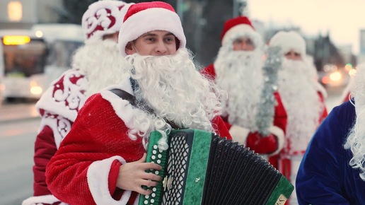 Деды Морозы, Снегурочки и Вовка из Тридевятого царства прогулялись по Кургану. Видео