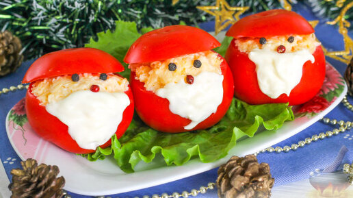 Яркие и забавные "деды морозы" вызовут восхищение и взрослых, и детей, собравшихся за новогодним столом. Готовится закуска из помидоров, фаршированных сыром с чесноком и майонезом, всего за несколько минут, и вы с легкостью подадите простую закуску на праздничный стол...
