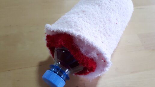 Недавно моя дочь попросила купить ей махровые носки красного и белого цвета. Она ведет канал "Живые вещи" и носочки нужны для игрушки. Белые не нашла, купила розовые и красные. Два носка она использовала, а два непарных осталось. Ну не выкидывать же, придумали мы из них Деда Мороза со Снегурочкой смастерить. Кроме носочков понадобится пустая пластиковая бутылка от воды или втулка от туалетной бумаги, кусочки меха, пряжа для косичек, немного синтепона, бусины и глазки. Итак, начинаем. Разрезаем носки по пятке...