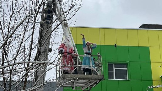 Дед Мороз поднялся на пожарной лестнице и поздравил детей в больнице Липецка