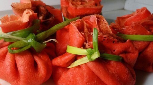 Новый год - это день чудес и волшебства. Хотите порадовать своих близким не только вкусным блюдом, но и своим креативом? Тогда читайте дальше, эта статья для ВАС! Замешиваем тесто на блины: 1 яйцо Сода 1/3 ч.л. 120 гр. молока 120 гр. горячей воды (не кипятка!) Растительное масло 1 ст.л. 300-350 грамм муки 3 капли красного красителя (можно заменить на свекольный сок) Видео-рецепт "красных блинчиков" вы можете увидеть у меня на инстаграм страничке @anna_lapshina333 Обжариваем наши блинчики с 2 сторон...