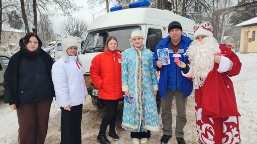 » В рамках акции активисты дарят праздник тем, кто встречает новогодние дни на работе или на службе. Стартует она в декабре и длится до середины января. Так, участники акции из Лухской школы поздравили работников столовой и сотрудников аптеки посёлка. А ученики Тимирязевской школы - работников швейного цеха...